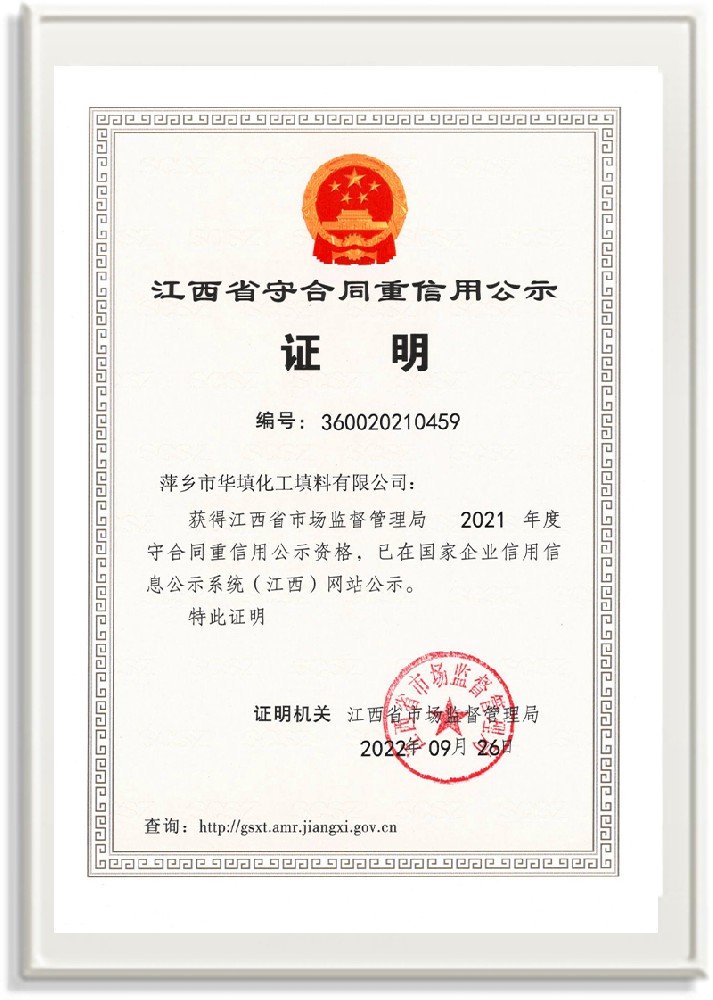 萍鄉市華填化工填料有限公司,位于320國道、109國道、浙贛鐵路、昌金高速公路貫穿其中,交通便利,是江西西部一顆燦爛明珠,創建于20世紀70年代初期,是中國石油天然氣股份有限公司“能源一號網”會員企業、中國石化物資采購電子商務網絡和中國海洋石油總公司采辦業務系統成員單位,是上海大學江西材料基因組工程產業研究院工業陶瓷產業創新聯盟基地,且通過ISO9001:2015質量管理體系、ISO14001:2015環境管理體系、ISO45001:2018職業健康安全管理體系認證的化工填料生產企業。公司擁有陶瓷、塑料、金屬填料、催化劑、活性氧化鋁、分子篩等產品生產線,現有固定資產3616萬元,占地面積3.8萬平方米。公司具有悠久的生產歷史、雄厚的技術力量和先進的生產工藝設備,可生產工業瓷球(支撐劑)、陶瓷、金屬、塑料質的規整、散堆化工填料及分子篩、催化劑、生化濾料、活性氧化鋁、石化助劑、活性炭、環保材料、耐火材料等系列的200多種規格型號產品。